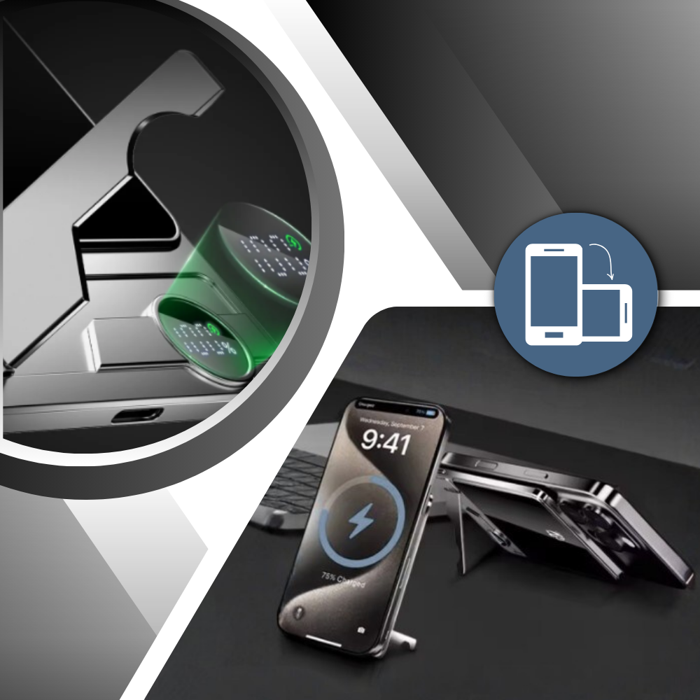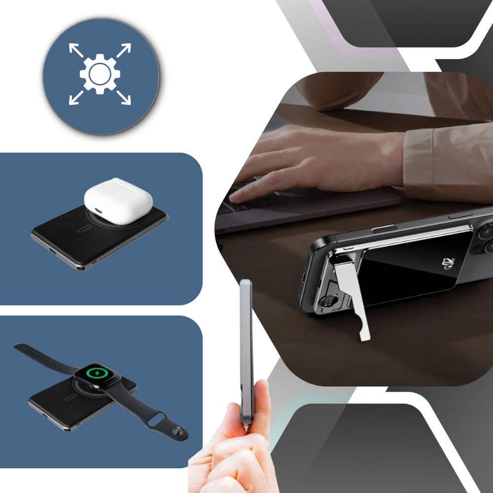 Function meets form with the Foldable Kickstand, letting you prop your phone up in landscape or portrait mode while it charges. Whether you're video-calling, watching Netflix, or reading the news, you get hands-free convenience alongside continuous wireless power. When not in use, the stand folds flat, preserving the power bank’s compact profile — ideal for everyday use, travel, or desk setups.