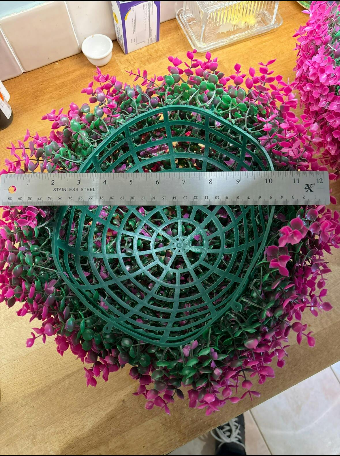 received the product, poorly packaged should be round and is squashed square, , not assembled and doesn’t look like the pictured in advert , nothing provided to hang them. I ordered 40 cm these are 30cm . Dreadful product absolutely not worth the money I paid for them .