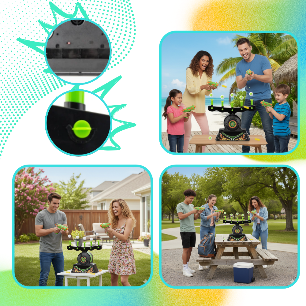 Though the balls hover in place rather than moving around, this stability makes them ideal for precision training. Players must control their breathing, steady their hand, and line up their shots carefully to hit a levitating foam balls—a surprisingly challenging task, especially for younger kids. This encourages improved focus, patience, and hand-eye coordination with every round. Unlike chaotic or noisy toys, this game turns into a skillful challenge, giving players a real sense of progress and accomplishment.