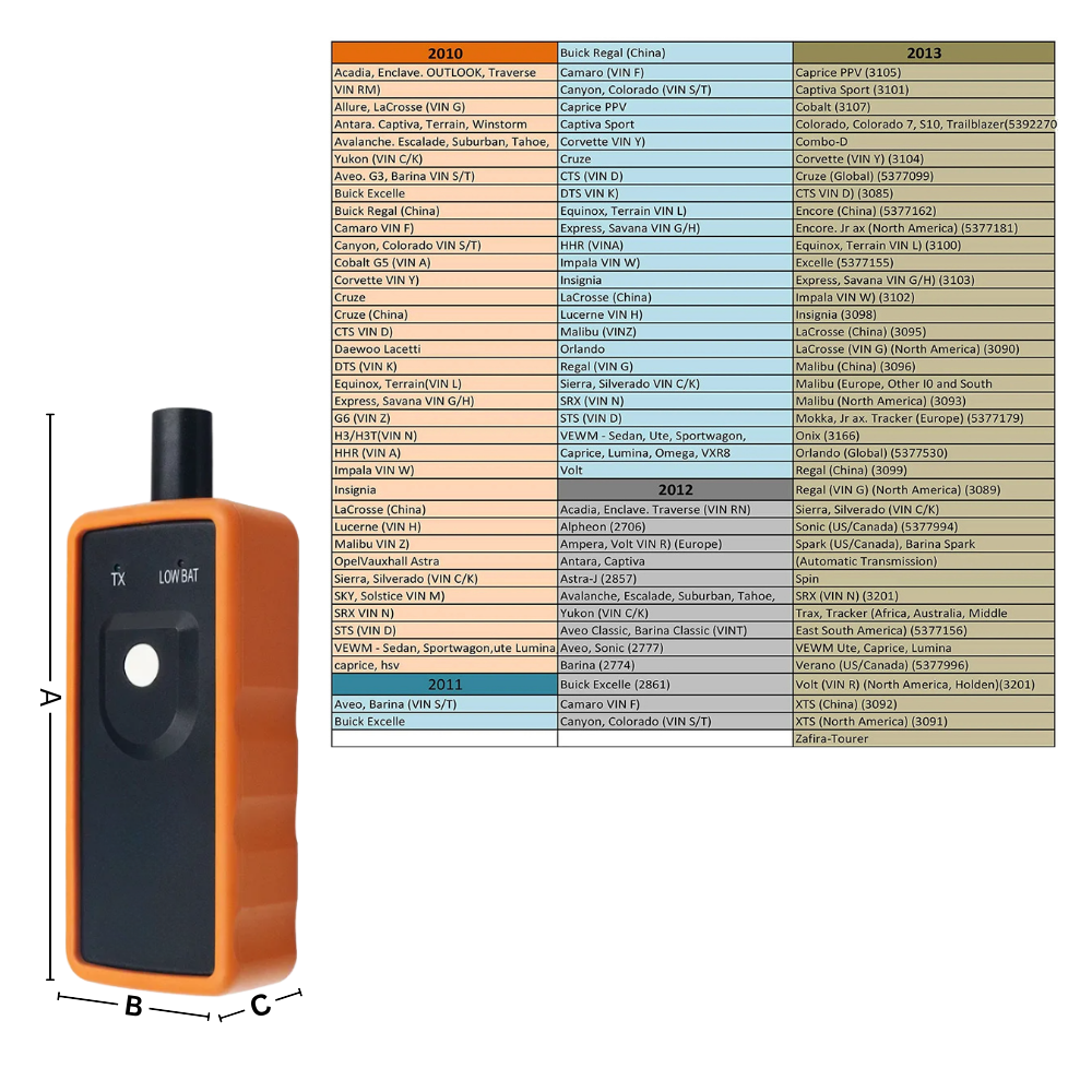 GM support is not a generic promise—it is a core design principle of the High Accuracy Tpms Relearn Tool. Built specifically for General Motors platforms, this tool works seamlessly with Buick, Chevrolet, Cadillac, and GMC models that use TPMS technology. By supporting both 315 MHz and 433 MHz frequencies, it ensures reliable compatibility across a wide range of vehicles, delivering stable communication and dependable results without the risk of misreads or system conflicts.