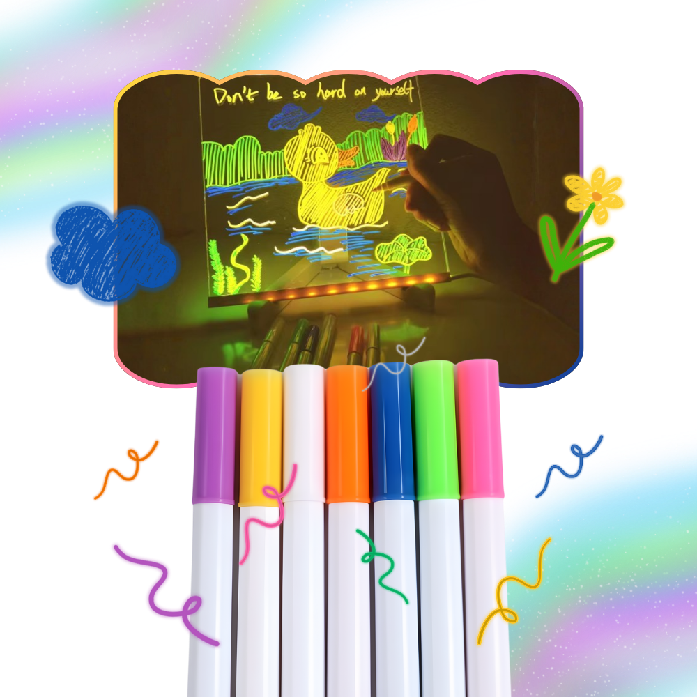 More than a utility, this Mesmerizing LED Note Board is a canvas for creativity and personality. Kids can doodle and color with glowing lines, teens can craft stylish daily affirmations, and professionals can sketch or brainstorm on the fly. It invites constant reinvention—write, draw, erase, repeat—all under captivating light. This is your space to create, reflect, and communicate in a way that feels fun, personal, and visually impactful. From motivational mantras to late-night sketches, it's a unique tool for limitless expression.